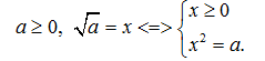 2. Cho số thực a không âm. Căn bậc hai số học của a (kí hiệu ) là một số x không âm mà bình phương của nó bằng a :